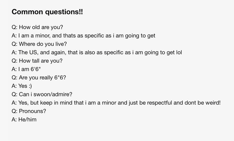 Personal Info: Do not search for/speculate about personal information about him (real name, sexuality or anything else he’s purposefully kept private)